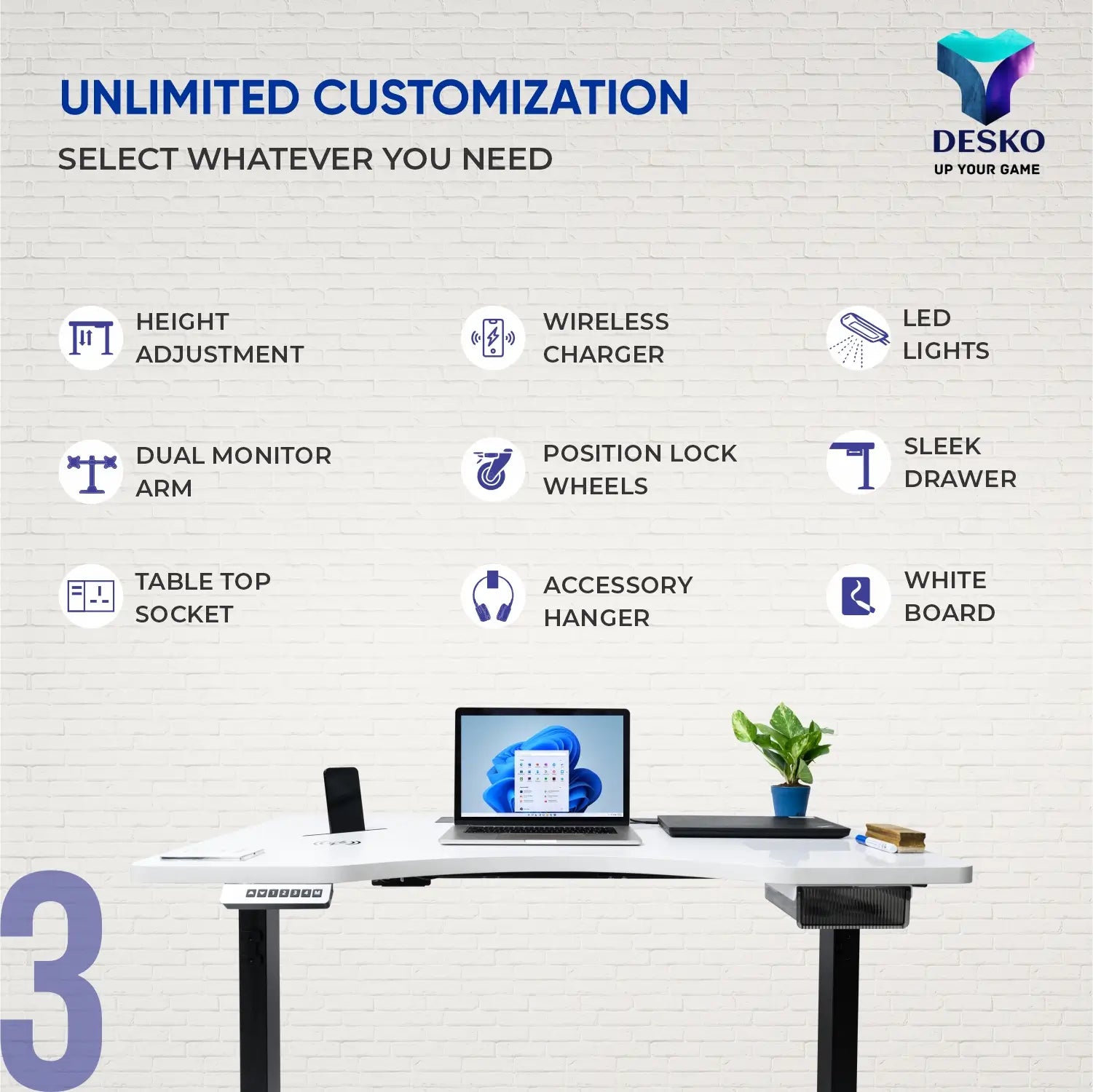 A: A customizable desk allows you to design and personalize your desk according to your specific needs and preferences. At Deskohome, you can choose the size, shape, color, and features of your desk, ensuring it perfectly fits your workspace and enhances your productivity.